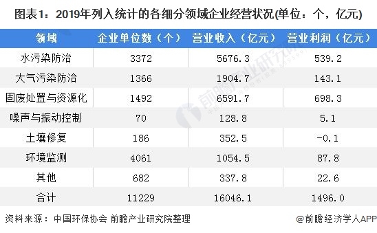 從企業數量看,列入統計的11229家企業相對集中分布在環境監測、水污染防治、固廢處置與資源化、大氣污染防治4大領域,上述領域企業數量合計占比超過91.7%。