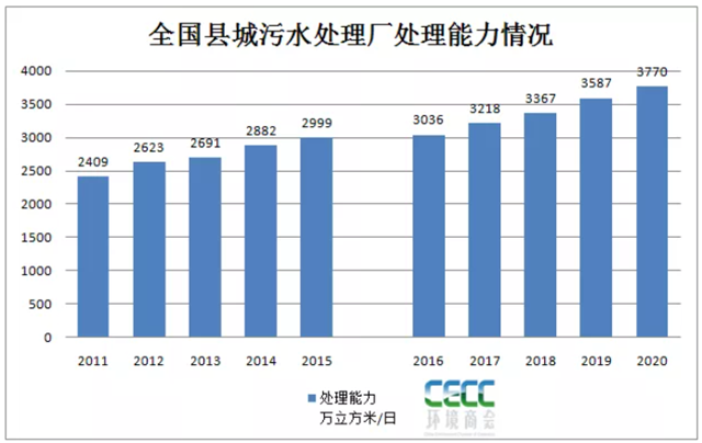 導讀:截止2020年,縣城污水年排水量為103.76億立方米,較“十二五”增長12%,年處理總量為98.62億立方米,增長約25%,污水處理率達95.5%。