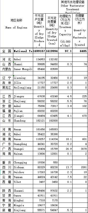污泥排放情況,城市污泥排放大戶主要集中在北京、廣東、江蘇、浙江等地,而縣城干污泥產生量比較大的省份則主要集中在山東、河南、河北、湖南、山西、陜西等地,其中,山東、河南兩地較為突出,達18萬噸。