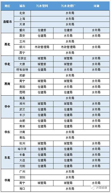 由此可見,全國主要城市污水處理廠、污水管網及河湖管理的主要模式為:污水處理廠及污水管網統一由住建局或城管局管理,河湖由水務局管理。