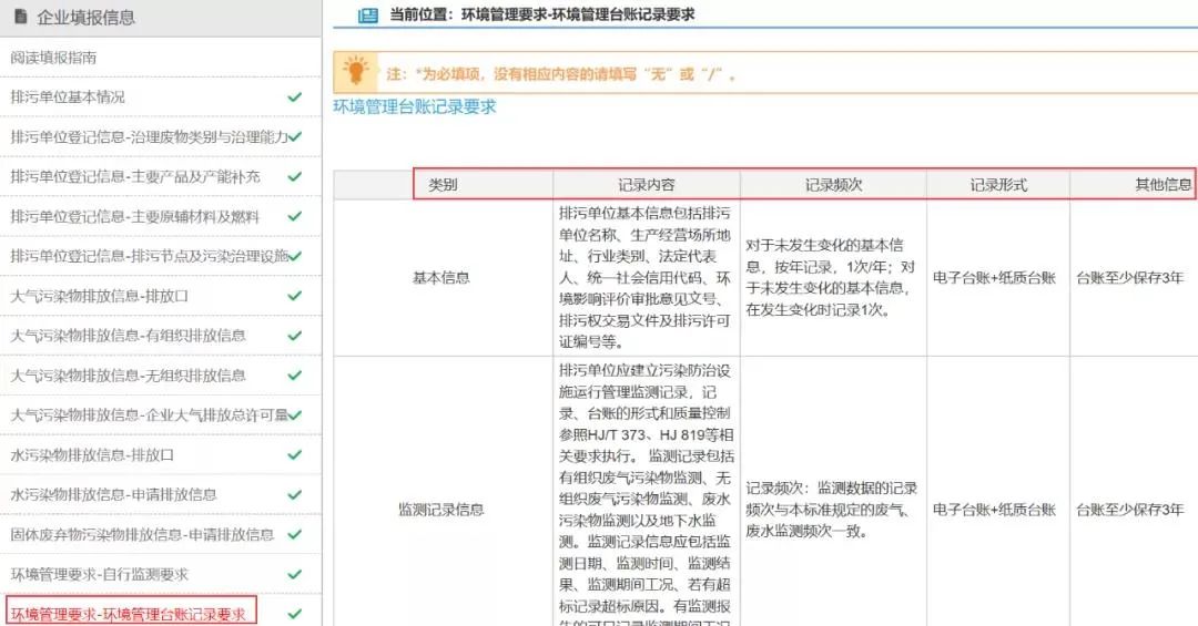 排污單位應根據排污許可證中臺賬記錄要求的記錄信息進行記錄。記錄形式為電子臺賬和紙質臺賬。保存期限不少于3年(危險廢物經營單位應當將臺賬記錄保存10年以上,以填埋方式處置危險廢物的臺賬記錄應當永久保存)。具體在排污許可證“環境管理要求-環境管理臺賬記錄要求”中查看。